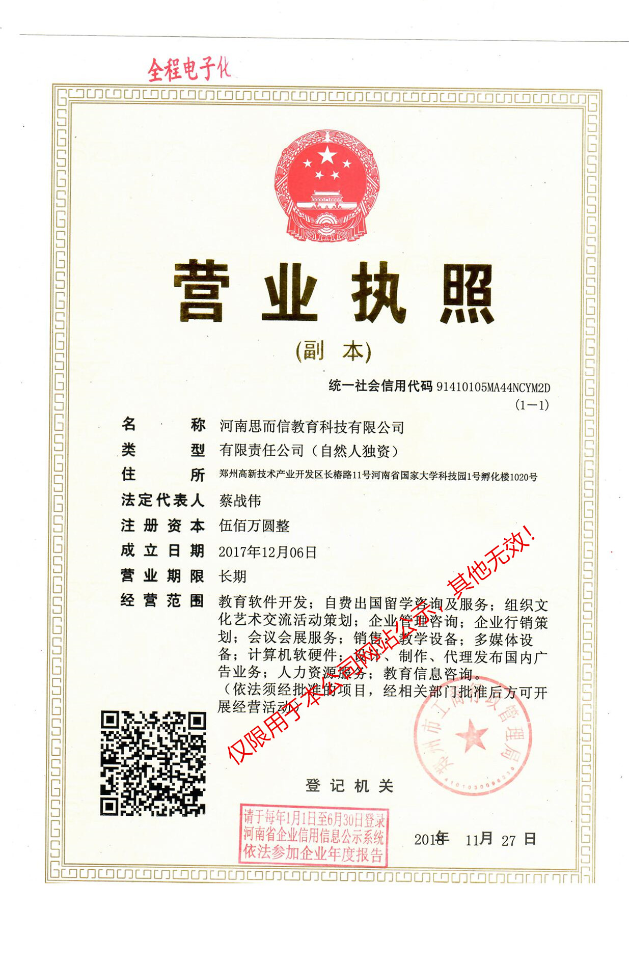 河南思而信教育科技有限公司是2017年经郑州市工商局审批的的教育培训机构,我中心位于郑州高新区国家大学科技园。